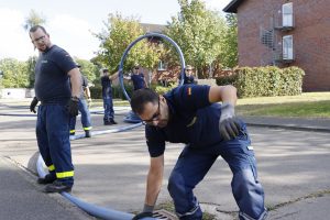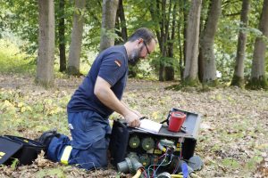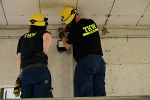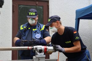 Ein Übungsschwerpunkt lag dabei auf der provisorischen Instandsetzung von Gebäuden. Damit im Szenario eine Unterbringung von Menschen möglich war, stellten die Fachgruppen Infrastruktur gemeinsam mit der Fachgruppe Trinkwasser Strom- und Wasserversorgung wieder her. Leitungen wurden neu verlegt, Anschlüsse geschaffen und sogar ein Duschcontainer angeschlossen. Unterstützt wurden diese Arbeiten von einer Fachgruppe Räumen, die mit schwerem Gerät die nötigen Gräben für die Versorgungsleitungen aushebte. Auch die Briloner Fachgruppe Infrastruktur war in diesem Szenario im Einsatz. Gemeinsam mit anderen Ortsverbänden errichteten die Briloner Helferinnen und Helfer die Stromversorgung in einem ehemaligen Schulgebäude, sodass es für die Übung als Unterkunft genutzt werden konnte. Dieses Beispiel zeigt, wie wichtig die Zusammenarbeit der unterschiedlichen Fachgruppen ist und wie das THW im Ernstfall Versorgungssysteme innerhalb kurzer Zeit wiederherstellen kann.